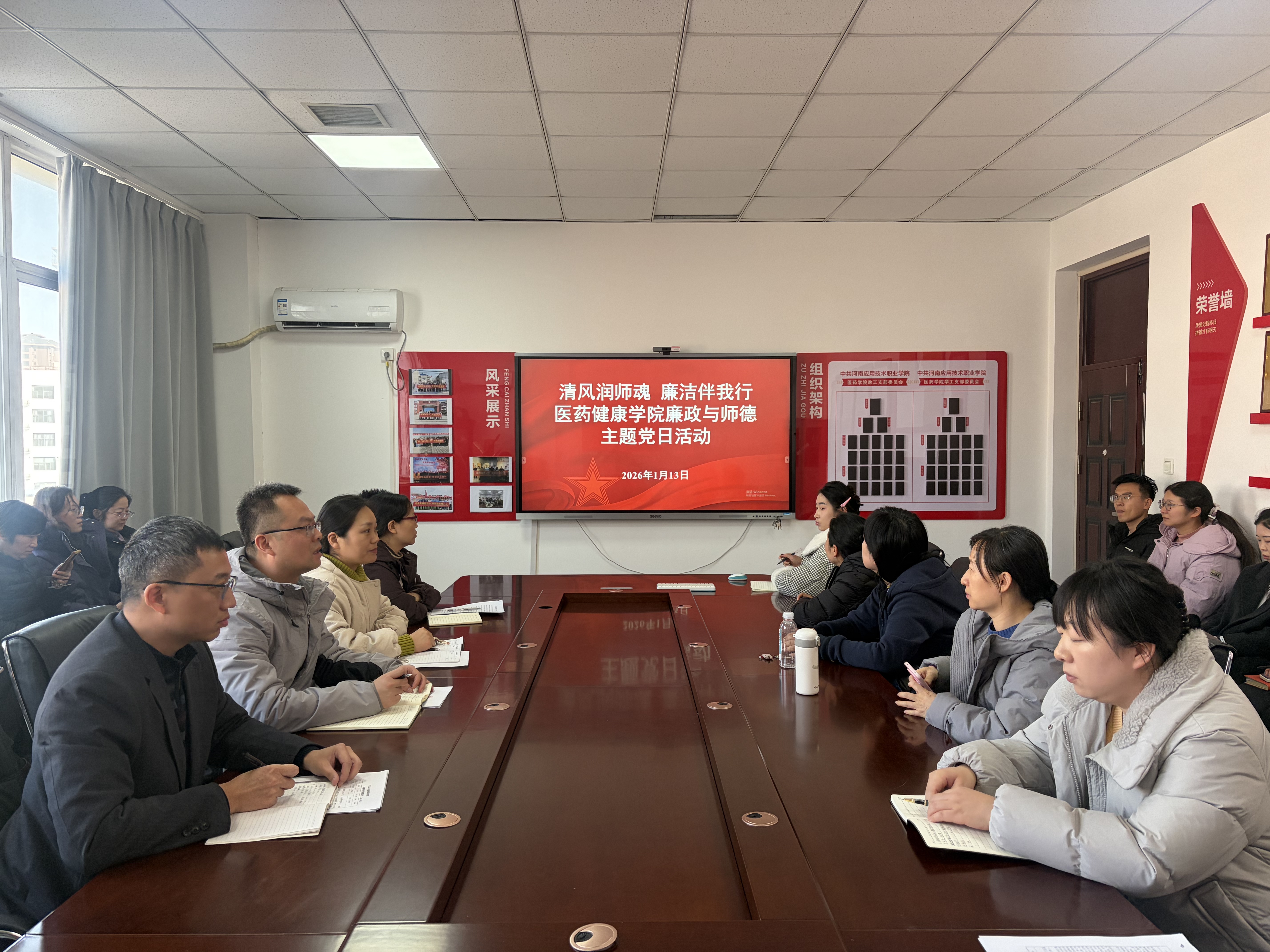 为深入学习贯彻习近平总书记在二十届中央纪委五次全会上的重要讲话精神,筑牢党员教师廉洁从教思想防线,1月13日下午,医药健康学院党总支在办公楼408党员活动中心开展“清风润师魂 廉洁伴我行”主题党日活动,学院全体党员参加。